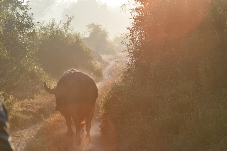 One of the Big 5 in Africa, the Cape Buffalo is one of the most dangerous. As we were on a game drive in the morning, we found this Buffalo walking along the path and we were careful to ensure it was not startled. Our guide told us that the Cape buffalo is the most dangerous of the Big 5 (Elephant, lion, Cape buffalo, rhino, and leopard) because they do not have a warning before they charge.